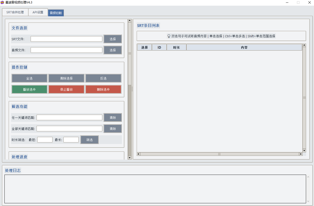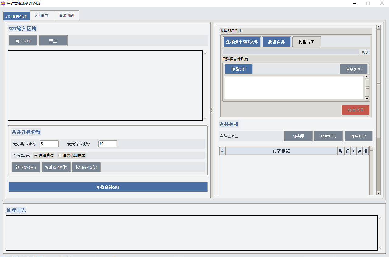 音视频处理工具,对碎片化音频的长短处理,综合排序,自定义合并段落,自定也切割,自定义长度,通过标准的srt校验,准确分割,不会造成语句破碎断句等情况。